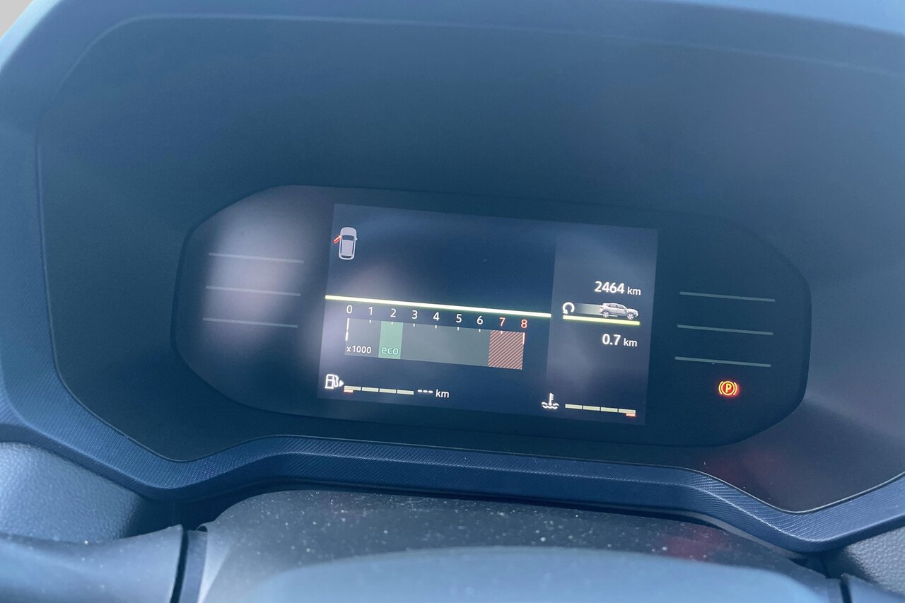 Deze stoere grijze SUV, aangedreven door een efficiënte mild hybrid benzine/elektrische motor met 131pk, combineert vlotte prestaties met een gunstig verbruik en een uitstoot van slechts 125g/km. Het stijlvolle zwarte stoffen interieur biedt comfort en duurzaamheid.