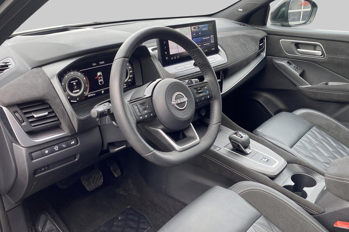 Stap binnen in de wereld van verfijnde luxe en geavanceerde technologie met deze uitzonderlijke Nissan Qashqai 1.3 DIG-T 158 XTRONIC MHEV Tekna+. Dit is niet zomaar een SUV; het is een statement van stijl en comfort, perfect voor wie het beste van twee werelden zoekt.