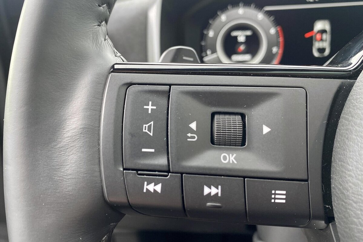 Als topmodel is deze Tekna+ boordevol indrukwekkende opties. Denk aan het luxueuze panoramische dak, het comfort van het zwarte lederen interieur met elektrische zetelverstelling en geheugen, en geavanceerde assistentiesystemen zoals de 360° camera en Adaptieve Cruise Control. Uw smartphone laadt draadloos op terwijl u geniet van het navigatiesysteem met Apple CarPlay en Android Auto, en in koudere maanden zult u het verwarmde stuurwiel en de zetelverwarming zeker waarderen. Daarnaast zorgen de volledig LED koplampen voor optimaal zicht en een moderne look.