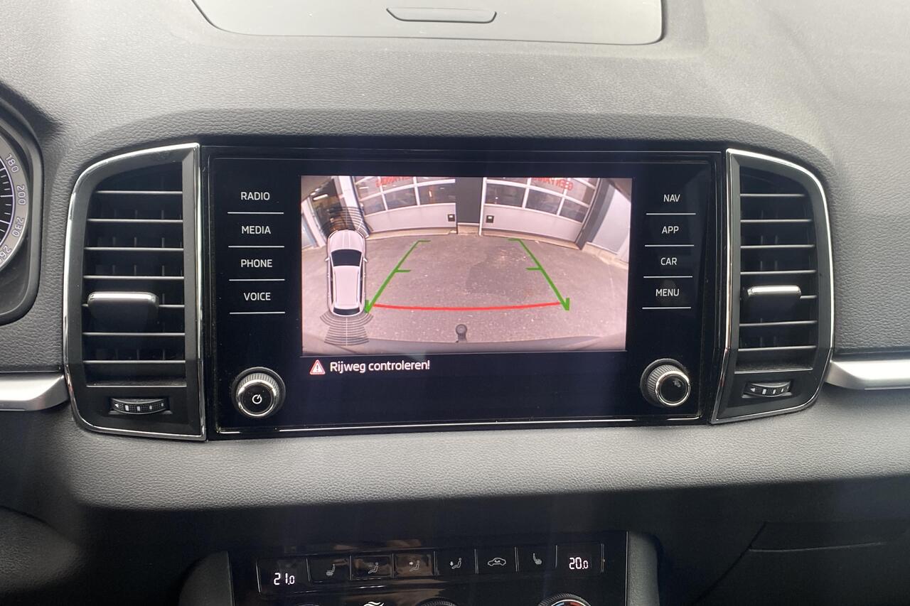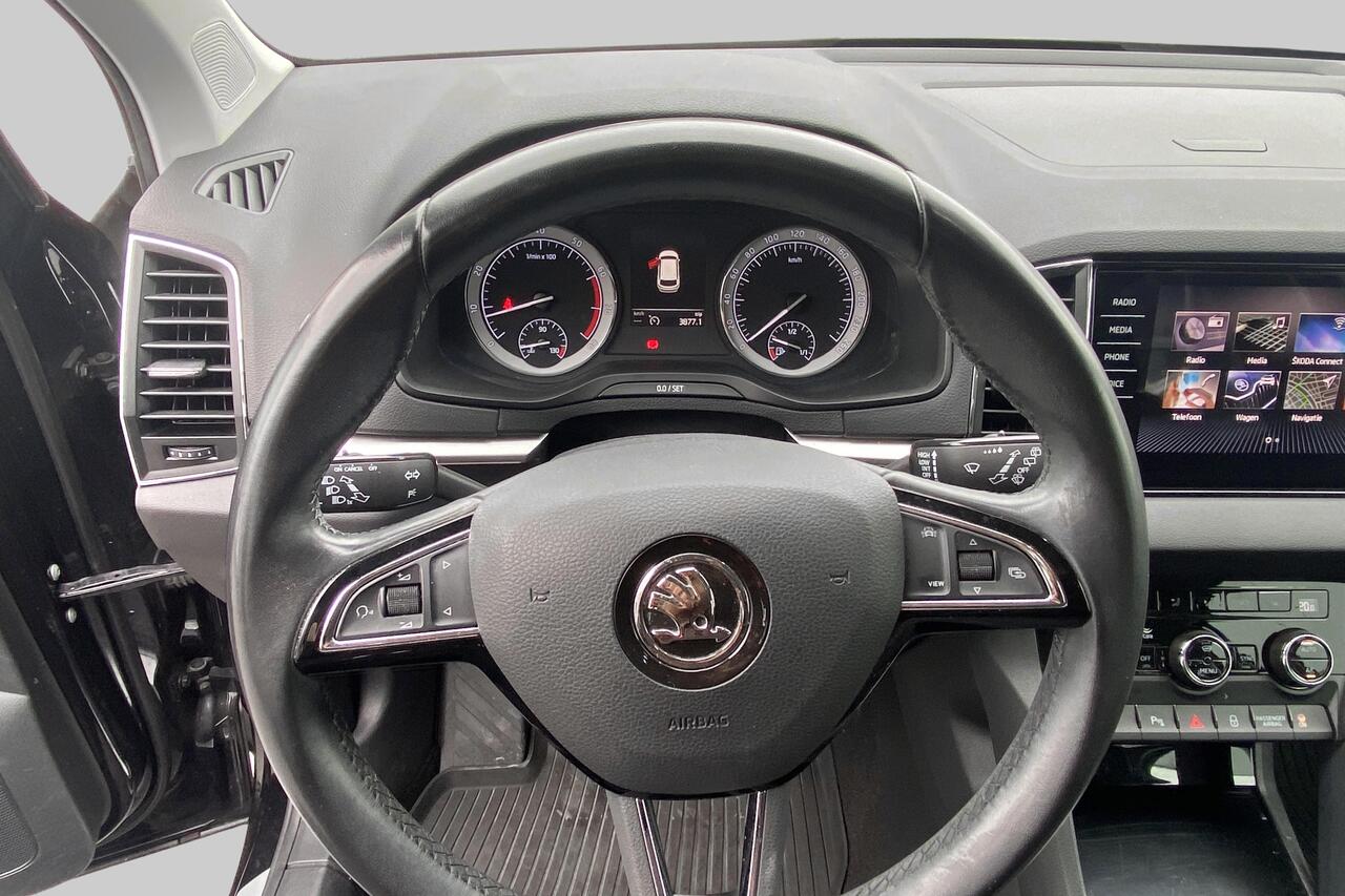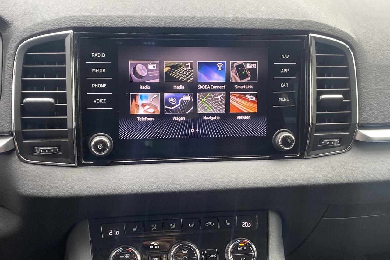 Binnenin geniet u van een comfortabel zwart stoffen interieur. Deze Karoq is rijkelijk uitgerust met hedendaagse voorzieningen zoals automatische klimaatregeling met 2 zones voor optimaal comfort, een geavanceerd navigatiesysteem met Apple CarPlay en Android Auto voor naadloze smartphone-integratie, en parkeersensoren met camera die inparkeren een fluitje van een cent maken. Daarnaast zorgen cruise control voor ontspannen ritten, de praktische vaste trekhaak voor extra functionaliteit en de stijlvolle lichtmetalen velgen voor een complete uitstraling. Deze wagen wordt geleverd met 2 sleutels en is klaar voor zijn volgende avontuur. Ontdek zelf de vele troeven van deze betrouwbare en complete Skoda Karoq.