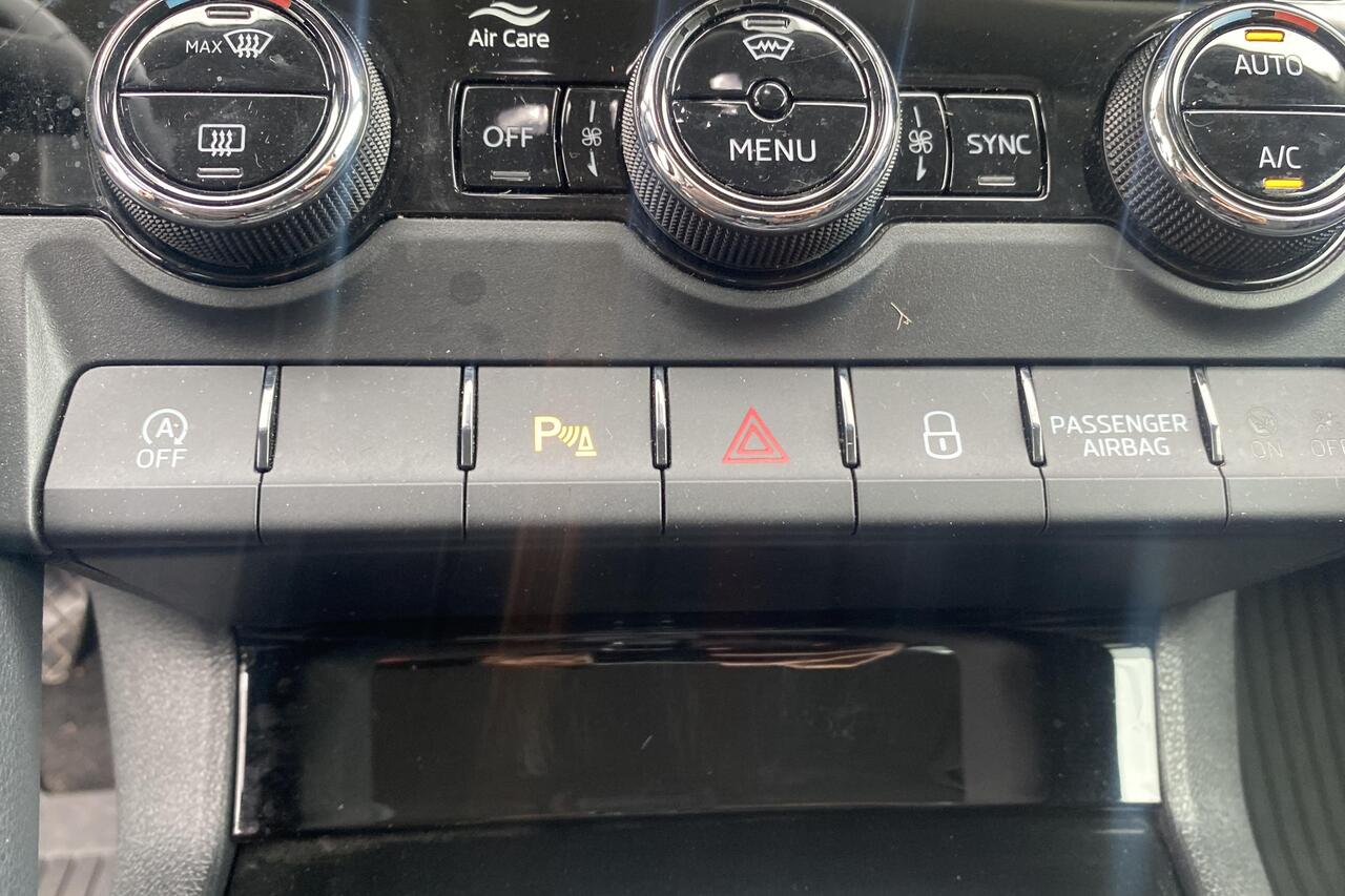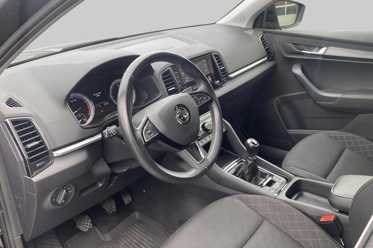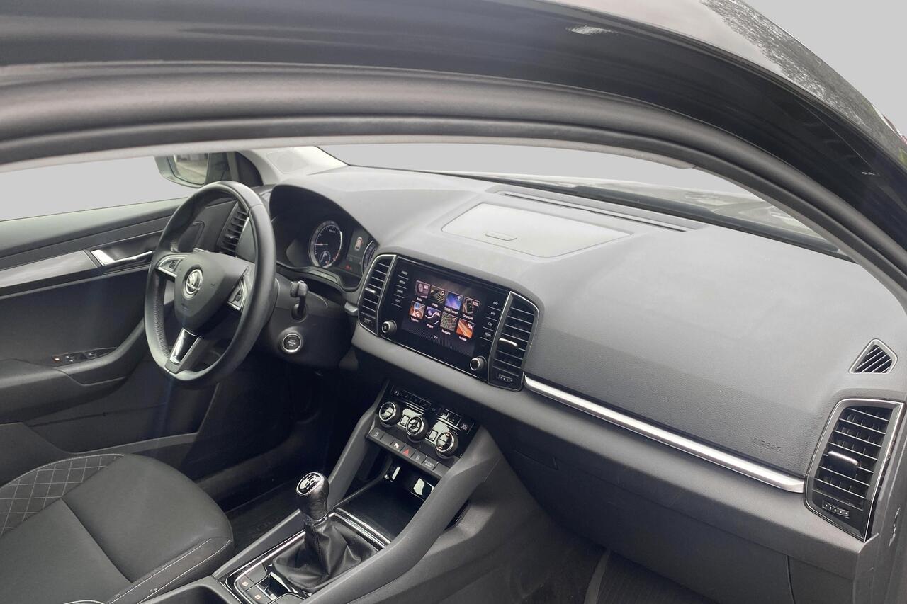 Binnenin geniet u van een comfortabel zwart stoffen interieur. Deze Karoq is rijkelijk uitgerust met hedendaagse voorzieningen zoals automatische klimaatregeling met 2 zones voor optimaal comfort, een geavanceerd navigatiesysteem met Apple CarPlay en Android Auto voor naadloze smartphone-integratie, en parkeersensoren met camera die inparkeren een fluitje van een cent maken. Daarnaast zorgen cruise control voor ontspannen ritten, de praktische vaste trekhaak voor extra functionaliteit en de stijlvolle lichtmetalen velgen voor een complete uitstraling. Deze wagen wordt geleverd met 2 sleutels en is klaar voor zijn volgende avontuur. Ontdek zelf de vele troeven van deze betrouwbare en complete Skoda Karoq.